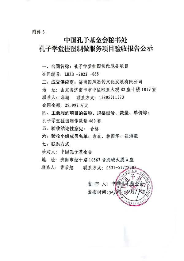 中国孔子基金会秘书处孔子学堂挂图制做服务项目验收报告公示