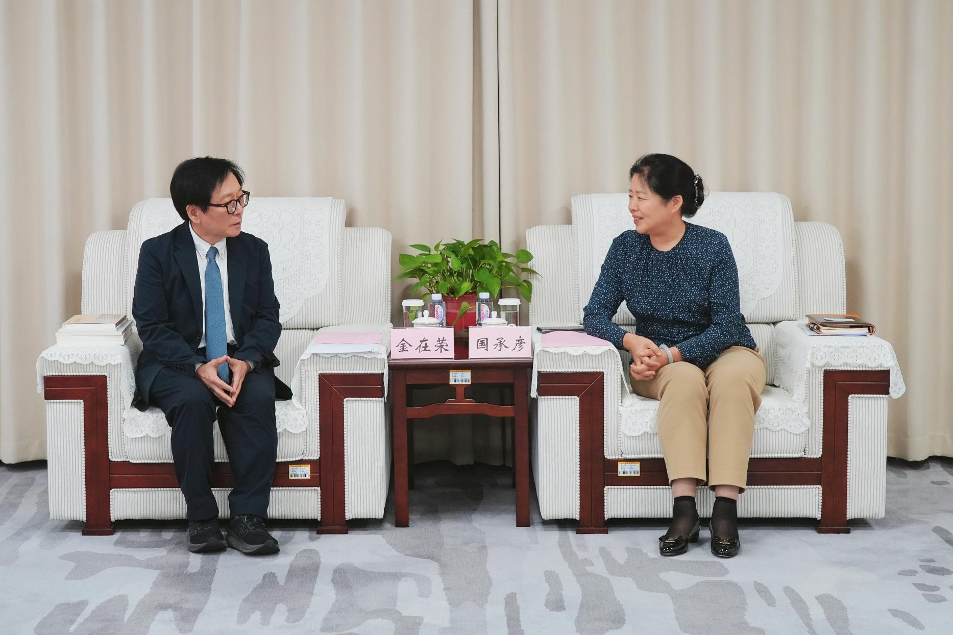 国承彦对金在荣教授的到来表示欢迎,对其在本次访学驻研期间的研究计划给予充分肯定。她指出,为了更好地践行全球文明倡议,持续深入地开展高水准、有价值的对话,“齐鲁访学驻研计划”于2024年启动,搭建起东西方古典文明交流对话的平台,为不同文明间的交流互鉴提供重要支撑。2025年已有近20名专家学者先后到访,分别在山东大学、儒学中心(基金会秘书处)和孔子研究院开展驻研工作,并围绕相关学术议题开展了深入而富有成效的交流研讨,形成了一批兼具思想深度与实践价值的研究成果。作为传承弘扬中华优秀传统文化的重要阵地,尼山世界儒学中心、中国孔子基金会始终牢记使命,积极推动中华优秀传统文化在全球视角下的传承与创新。创新设立尼山世界儒学中心海外分中心,提升儒家文化国际传播影响力;高标准承办尼山世界文明论坛,搭建全球文明交流对话桥梁;用心打造“光荣小屋”“幸福食堂”,将孝老敬亲、崇德向善的文化内涵融入基层服务,让中华优秀传统文化在新时代焕发生机。此次驻研,金在荣教授的研究主题聚焦于荀子与威廉·詹姆斯的比较研究,与儒学中心(基金会秘书处)即将举办的荀子思想国际学术研讨活动高度契合。尼山世界儒学中心、中国孔子基金会将充分发挥自身学术资源优势,充分利用尼山世界文明论坛、荀子思想国际学术研讨会等高端学术平台,推动不同文明视角下的思想碰撞。依托尼山杏坛、国际前沿学术讲座、青年沙龙等多样化活动载体,推动驻研学者与青年学者开展深度对话,为驻研学者提供宽松自由、积极活跃的学术氛围。期待金在荣教授在驻研期间取得丰硕成果,为推动全球文明交流互鉴做出积极贡献。