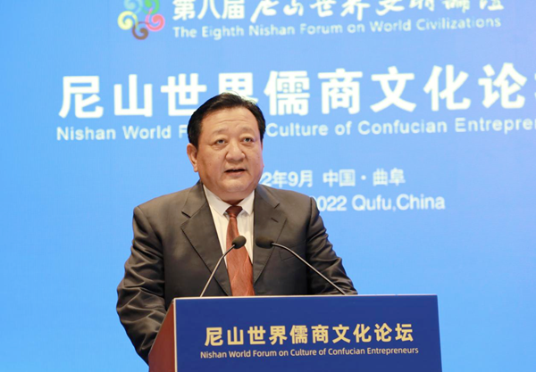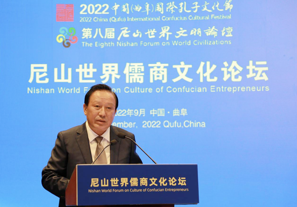 来源:中国孔子网 作者: 日期:2022-09-26以儒学涵养工商精神,共话新时代工商文明。9月26日下午,首届尼山世界儒商文化论坛在曲阜尼山启幕,海内外企业家代表、专家学者、孔子后裔代表等嘉宾通过线上线下方式齐聚尼山,儒商论道,共话文明,深入探讨新儒商时代价值与当代工商文明建构,向世界发出中华优秀传统文化助推当代经济发展的“尼山声音”。