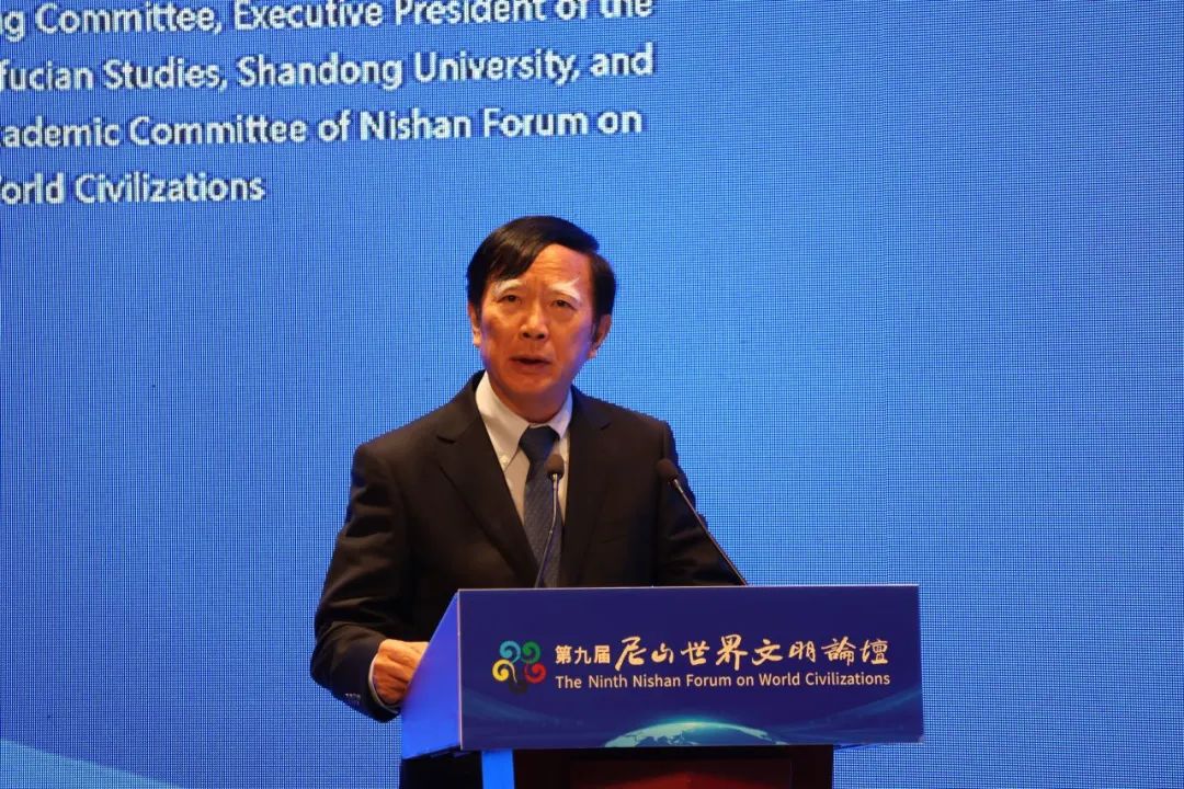 全国政协常委、山东大学儒学高等研究院执行院长兼《文史哲》主编、尼山世界文明论坛学术委员会副主任王学典主持主旨演讲环节。北京大学哲学系人文讲席教授安乐哲、韩国国立安东大学终身教授李润和、台湾政治大学中文系名誉教授董金裕先后发表主旨演讲。安乐哲探讨“儒家文化与当前全球性挑战的应对”,认为儒家“和而不同”理念是一种包含在关系公平核心价值观中并实现多样性的包容性多元主义,可以替代支离破碎的相对主义。李润和探讨“‘人伦日用’和‘天下归仁’及其现代意义”,认为“天下归仁”命题可以成为反省霸权主义,建立普遍性、兼容性、共生性世界体系的重要思考的基础。董金裕以白居易《慈乌夜啼》为例,探讨“儒家教孝与文明交流互鉴”,认为白居易所述慈乌之反哺其实并无生物学依据,但其影响深远且效果显著,这是因为教孝固然依赖理性,也需要具有深刻感染力的感性作品,亦即必须兼具理性与感性,才能克尽其功。王学典作为论坛学术主持人主持主旨演讲,他认为儒家文化所倡导的仁爱思想、和为贵的价值观、天下大同的理念等是指导人类解决当下世界乱象、走出人类发展生存困境的重要门径。