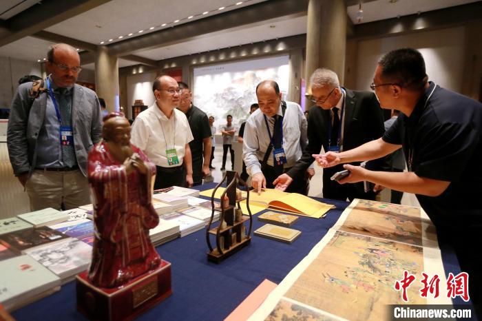 中外嘉宾在会场内翻阅中国典籍。梁犇 摄