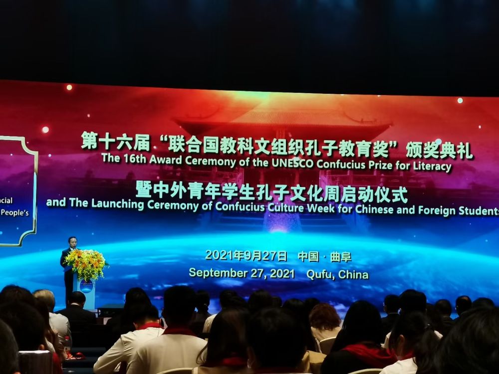 来源:新华社客户端 作者: 日期:2021-09-28第十六届联合国教科文组织孔子教育奖颁奖典礼27日在孔子故里山东曲阜举行。获奖的三个项目分别是墨西哥建设与成长组织的建设与成长项目、埃及艾因·夏姆斯大学的农村地区在线扫盲班项目,以及科特迪瓦信息技术扫盲教师协会利用信息和通信技术为阿比让经商者提供的功能性扫盲项目。