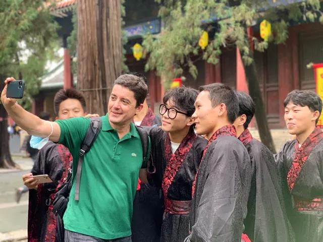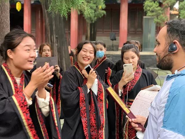 沐飒与孔庙中学生友好交流,了解儒家文化