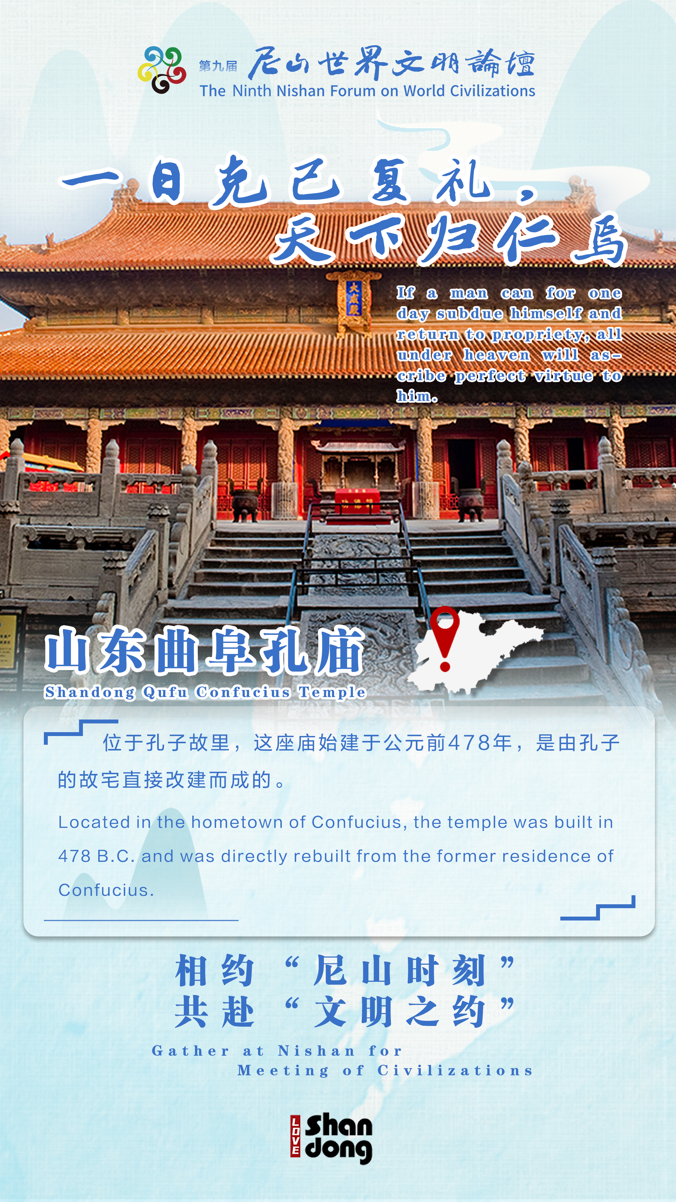 From 26 to 28 September, the Ninth Nishan Forum on World Civilizations will be held at Nishan in Qufu, Jining, Shandong Province. Experts and scholars from different countries will focus on the theme of “Humanity’s Common Values and a Community with a Shared Future for Mankind - Strengthening Civilizational Exchanges and Mutual Learning to Address Global Challenges Together”, and will participate in a civilizational meeting exchanging ideas in a combined online and offline way.