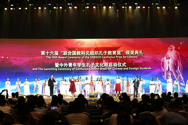 본 행사에 스테파니야 자니니 유네스코 교육보좌관이 동영상으로 축사를 하였다. 유네스코 주중 대표처 샤저한(夏泽翰) 주임이 축사를 읽고 제16회 유네스코 공자교육시상식 명단을 발표하였다, 산둥성위 상무위원이며 선전부(宣传部) 부장인 바이위강(白玉刚)중국 유네스코 전국위원회 사무국 친창웨이(秦昌威)사무총장, 샤저한 주임이‘클라우드 시상’을 진행하였다. 본 시상식은 왕신푸(王心富)부성장이 직접 사회를 진행하였다.