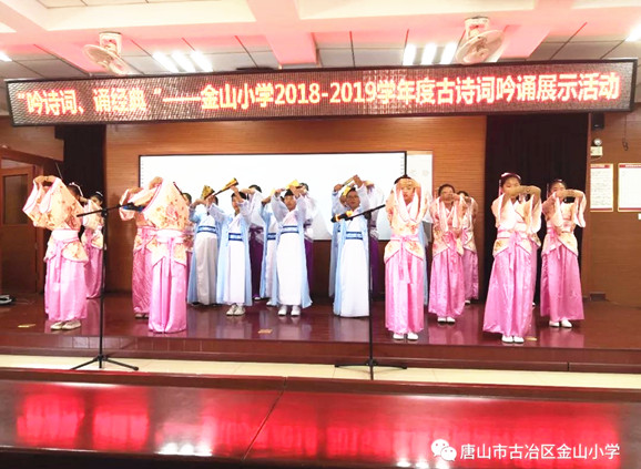 吟诵,是学习和传承中华优秀传统文化的重要途径。为了进一步落实新课程标准中关于弘扬民族文化精髓,加强学生民族底蕴的要求,提高学生吟诵、背诵能力,5月23日,唐山市古冶区金山小学在多功能教室开展了“吟诗词,诵经典”——金山小学古诗吟诵展示活动。