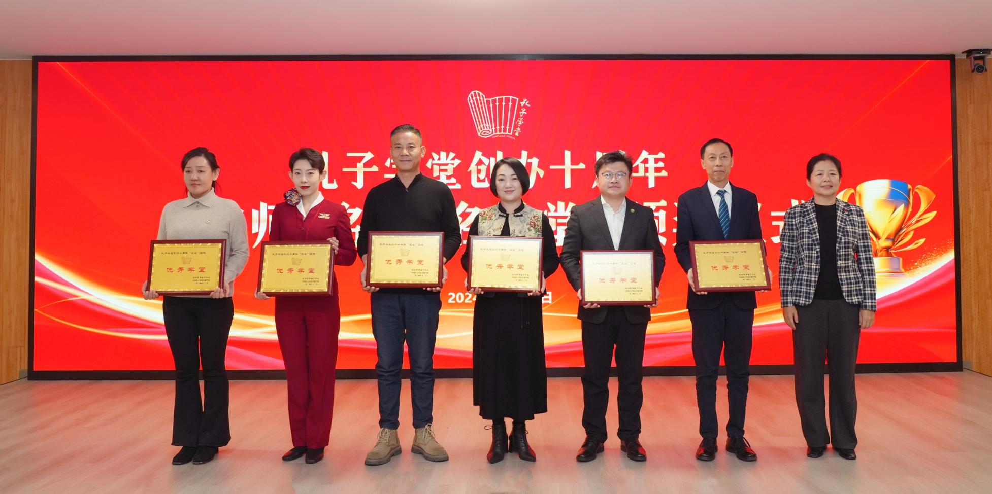 刘皓宣读了《关于表扬孔子学堂创办十周年“三名”工程优秀名单的通报》,国承彦、刘皓、温海明为“三名”工程获奖者代表颁奖。山东财经大学教授王蔚、洛阳老城区精神文明建设促进中心主任景亮、澳门教业中学孔子学堂校长贺诚等作经验交流发言。