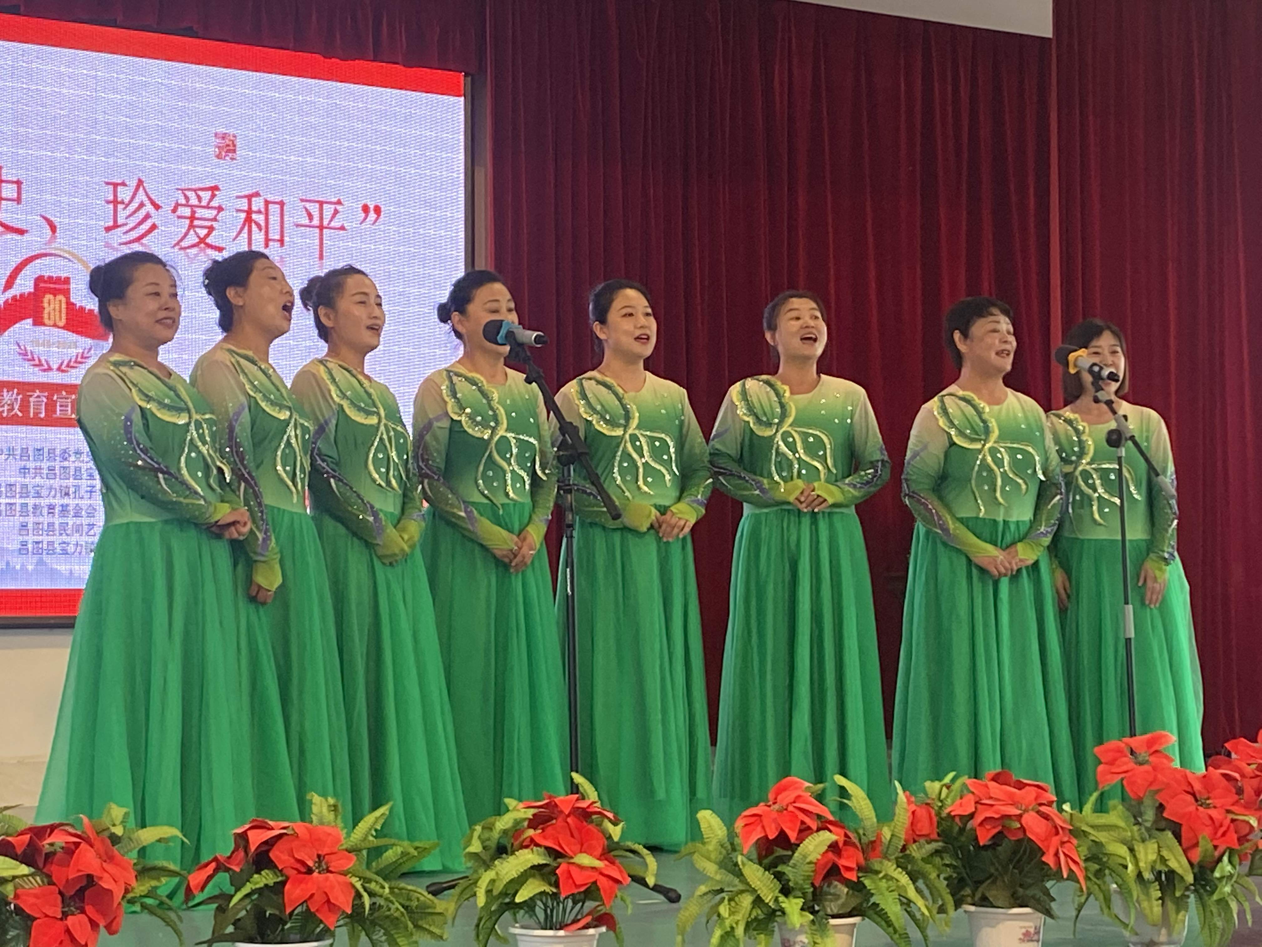 本次主题活动文艺节目均以纪念抗战胜利、打造美好生活为主题,男声独唱《地道战》气势雄浑,充满力量;女声独唱《绣红旗》深情婉转,赤胆忠心;民族舞《双脚踏上幸福路》节奏明快、舞步轻盈;健身舞《绿色军衣》英姿飒爽;诗朗诵《祖国是什么》《民族的丰碑》慷慨激昂、振奋人心,小合唱《南泥湾》婉转悠扬、大合唱《保卫黄河》气势磅礴。人们在《没有共产党就没有新中国》的旋律声中,共诉心声。