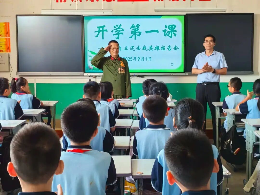为纪念中国人民抗日战争暨世界反法西斯战争胜利80周年,引导全体队员铭记历史、珍爱和平,9月1日开学之际,商河县殷巷镇中心小学孔子学堂特邀在对越自卫反击战中屡立战功的赵胜林老班长,为师生送上一堂意义深远的“开学思政第一课”。