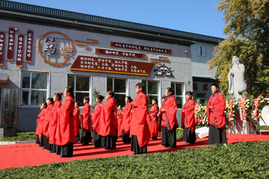 9月28日,至圣先师孔子诞辰2576周年之际,由黑龙江省水利学校、大庆市优秀传统文化促进会联合主办,黑龙江省水利学校孔子学堂承办的祭孔大典在黑龙江省水利学校隆重举行。大庆市委社会工作部、大庆市民政局社会组织管理局、大庆市总工会、大庆市人力资源和社会保障局、大庆市外事办、大庆市关心下一代工作委员会等二十余家单位代表、儒学社团、志愿者及黑龙江省水利校师生1000余人齐聚校园,以古礼缅怀先哲,以经典弘扬道统,共同开启一场跨越时空的文化对话。