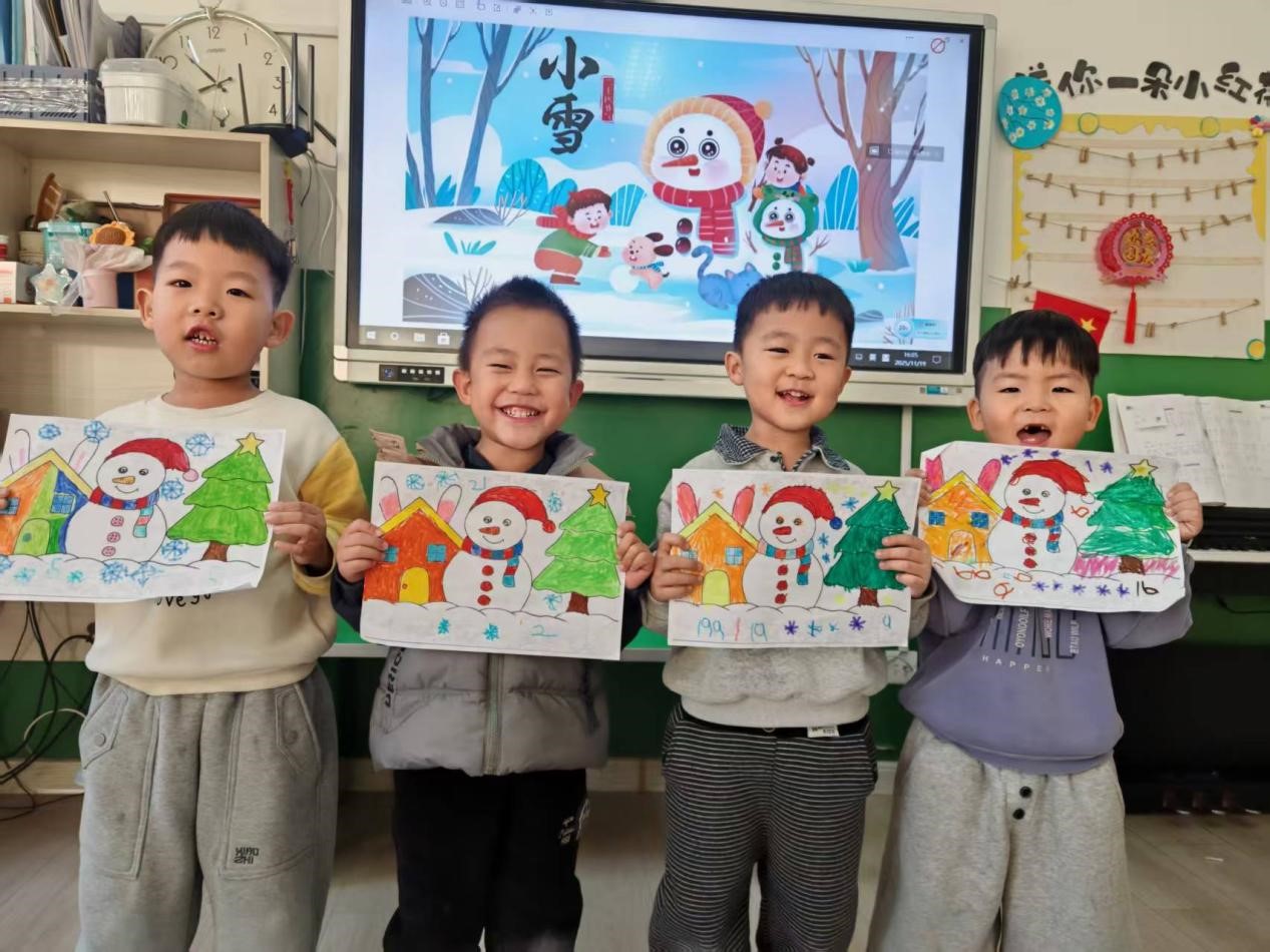 随后,中班班创意手工让孩子们的想象力充分绽放。孩子们用画笔绘制出一幅幅小雪人,一双双小手忙得不亦乐乎。在创作过程中,孩子们不仅锻炼了动手能力和创造力,更将对小雪节气的理解融入作品之中,每一件作品都充满了童真与创意。