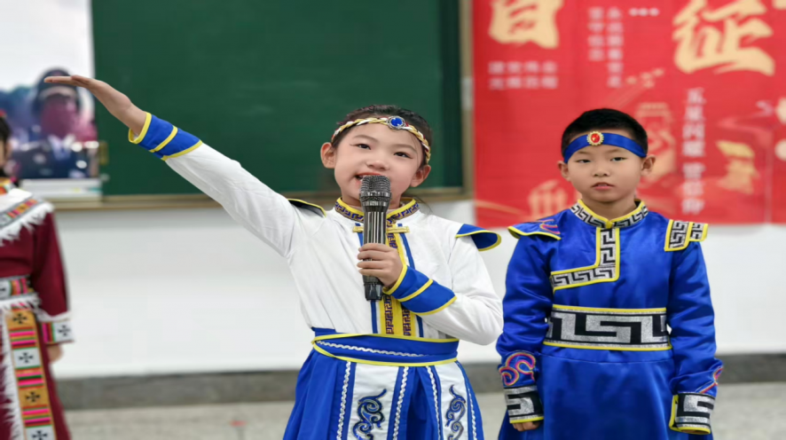 活动现场氛围热烈,身着各民族特色服装的孩子们活力绽放。孔子学堂的王紫宁,门富尧等同学带来的朗诵《民族团结一家亲》铿锵有力,诠释出中华民族同心聚力的温暖力量。