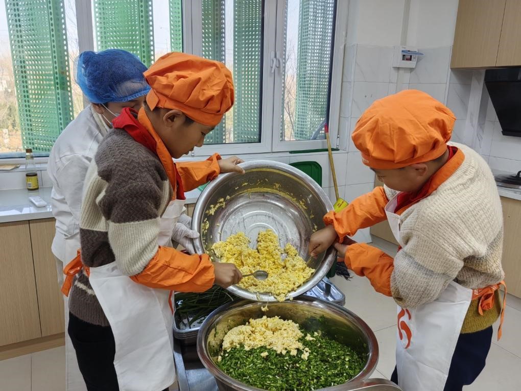 学校精心准备了韭菜、鸡蛋、面粉等新鲜食材,并对所有原料进行了安全细致的查验。老师结合冬至节气的自然规律,介绍了北方“冬至吃饺子”的饮食传统,讲述了饺子所承载的团圆文化与节气智慧。