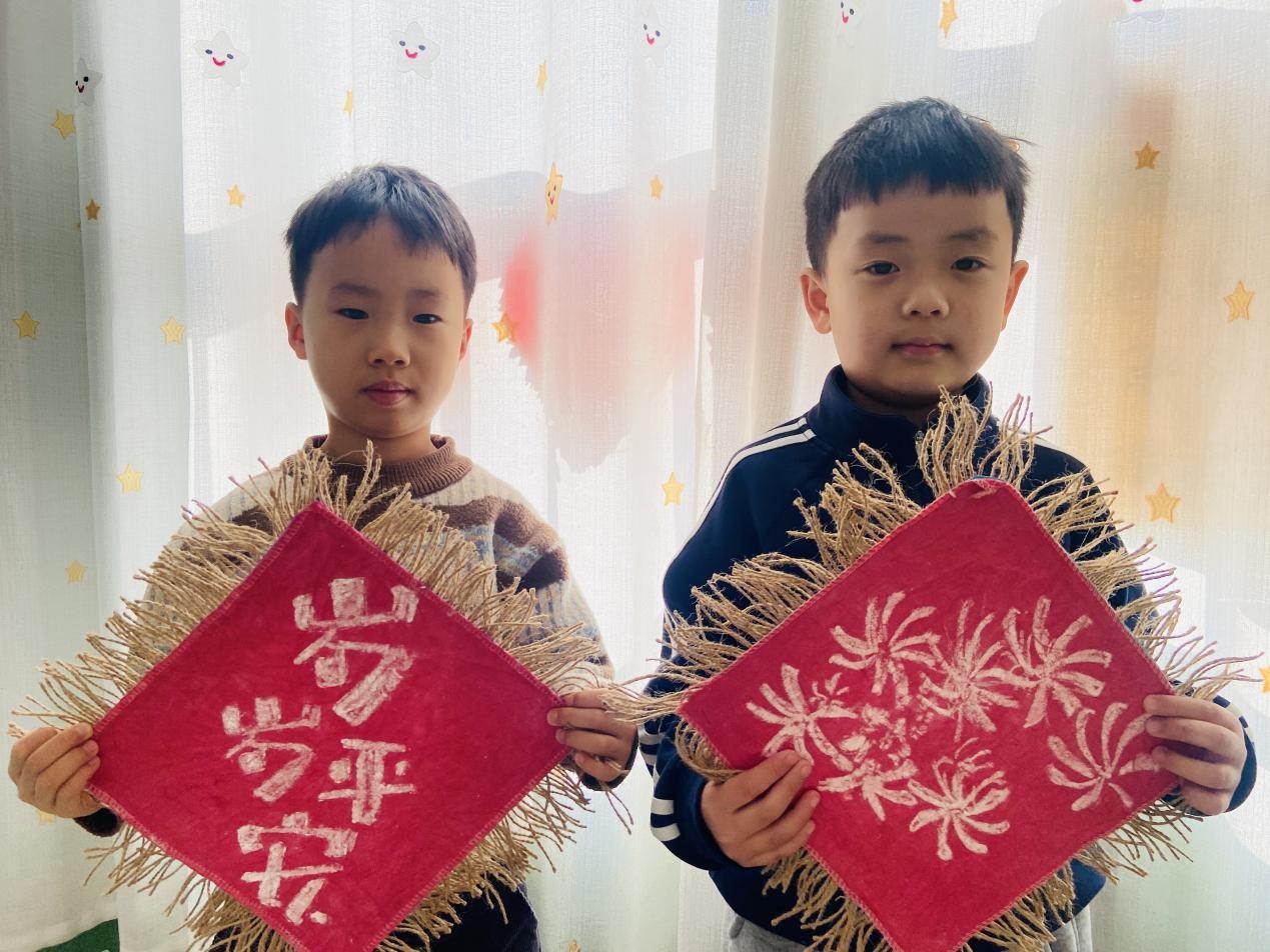 黏土在小手里揉、搓、捏、压,转眼变成憨态可掬的礼花、御寒的手套;扎染方布在清水里晕开,蓝白相间的花纹绽放出独属于孩子的创意;小剪刀“咔嚓咔嚓”穿梭,红纸上跃出灵动的窗花、美丽的烟花;拓印工具蘸上颜料轻压,一幅幅带着古朴韵味的年画便新鲜出炉。