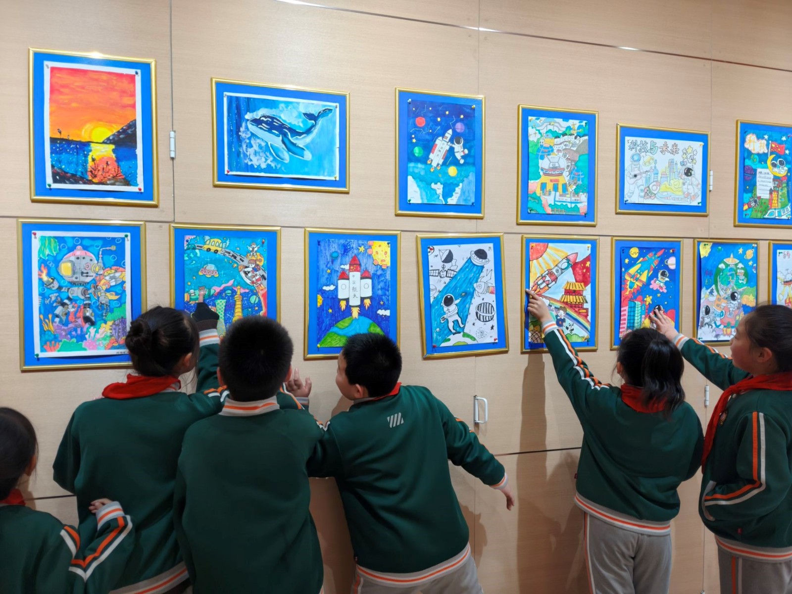 本次展览共汇集了来自学校各年级师生的优秀作品,涵盖国画、书法、线描、彩绘四大艺术门类。稚拙而真挚的笔触间,既透露出学生们日益进步的艺术表达能力,也展现着师生共创的审美追求。墨香氤氲着新春的喜悦,传统融合着现代的想象,这场展览不仅是学校美育成果的生动呈现,更成为了师生共同参与、彼此启迪的成长课堂。