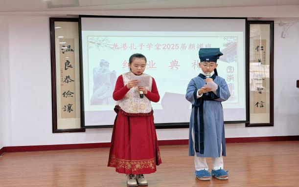 2月1日上午9时,浙江温州龙港孔子学堂内书香萦绕、暖意融融,2025届颜渊班结业典礼如期举行。全体学员、家长齐聚一堂,共同回望两年经典诵读时光,见证成长收获,以一场庄重温馨的仪式,为这段国学学习之旅画上圆满句号。