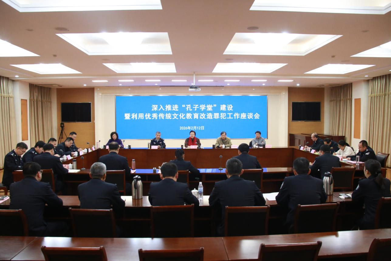 2月12日,深入推进“孔子学堂”建设暨利用优秀传统文化教育改造罪犯工作座谈会在山东省监狱管理局举办。尼山世界儒学中心(中国孔子基金会秘书处)党委委员、副秘书长,孔子学堂推进委员会主任周静,山东省监狱管理局党委副书记、政委王正出席并致辞,山东省监狱管理局总经济师、一级调研员马冬鸿主持会议。