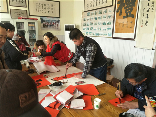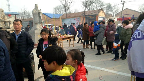 腊月26日新盛店镇文化镇长亲自到拐尔庄村孔子学堂为党员及村民代表写春联;27日,县妇联主席张胜利带领夏津县义工委人员在孔子学堂为拐尔庄村老年人和荣誉村民剪年画、写春联;28日,县委副书记李超在孔子学堂主持拐尔庄村18年党员活动总结会,看望了老党员和因病至穷的困难户并送来了慰问品;29日,拐尔庄村民举行拐尔庄联中毕业25周年联谊会;大年30上午,拐尔庄村党支部和村委会、孔子学堂志愿者、大学生给党员、军属、老困难户张贴春联,打扫庭院卫生,下午拐尔庄村家鼓队在孔子学堂举行迎新年表演;30晚上,有村民自备的k歌演唱会;大年初一9时,拐尔庄村党支部、村委会组织全体村民在孔子文化广场举行拐尔庄村2019年团拜会,广场舞翩翩起舞彩扇展,家鼓队锣鼓震天精神爽,9点30分,党支部书记李家兵新年致辞,祭拜孔子,孔子学堂孝善基金会捐款,自愿奉献,场面动人,体现了全体村民在孔子学堂的影响下,奉献爱心、善心、义举的良好村风。