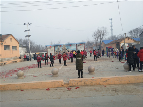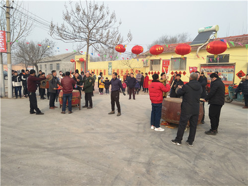 初一上午9点,拐尔庄村团拜会在孔子文化广场举行,家鼓队锣鼓喧天精神爽,舞蹈队翩翩起舞笑开颜,孔子文化广场呈现出春节祥和气氛。