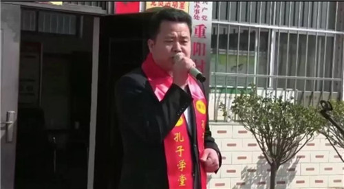 本次活动在锣鼓声中拉开帷幕,重阳村村委会主任韩虎强对各位来宾、各位老师的到来表示感谢。他表示重阳村开办孔子学堂是为了更好地诠释中华优秀传统文化,从而培养村民爱国守法,明礼诚信,孝亲尊师,勤俭自强,敬业奉献精神。