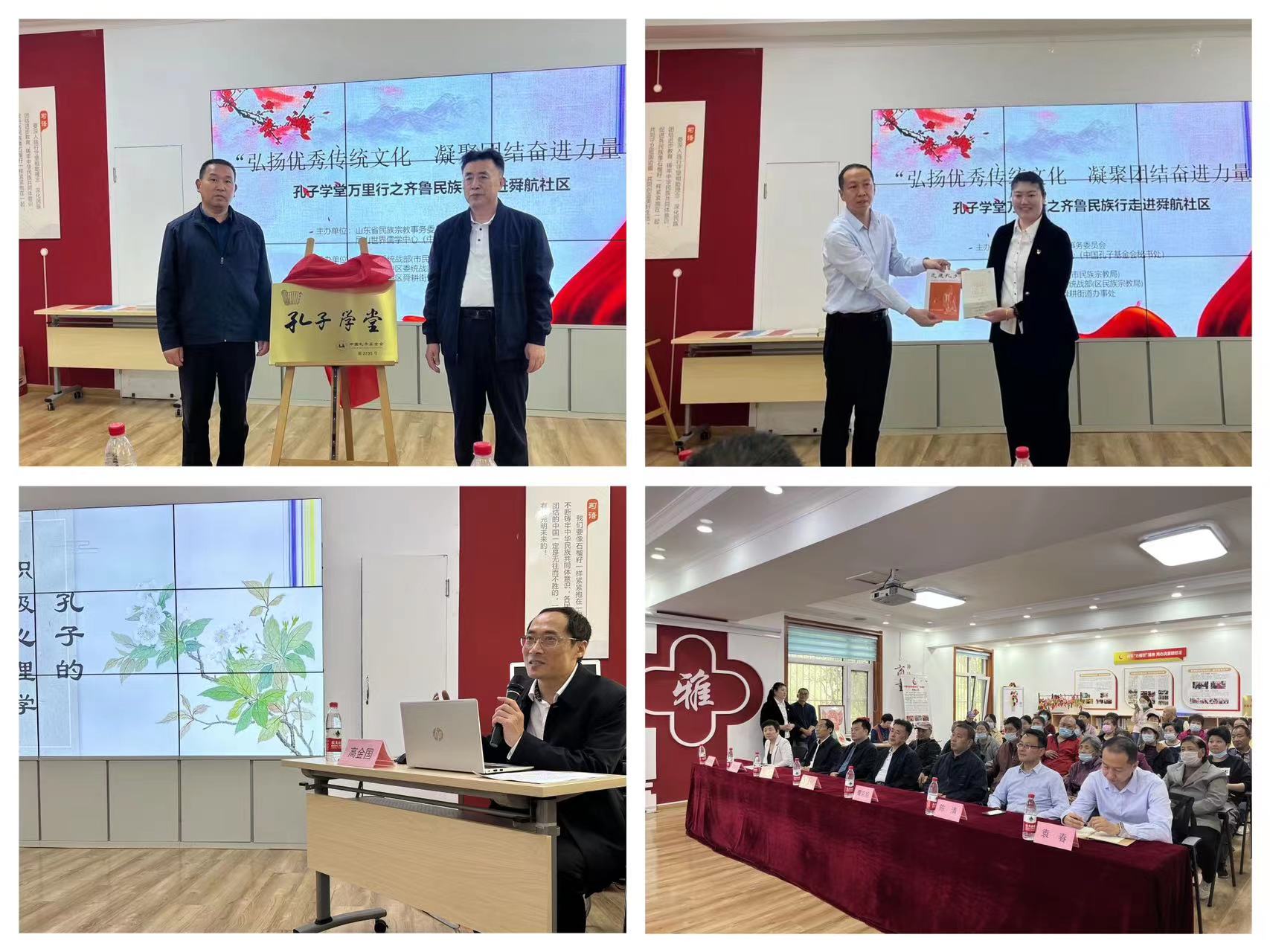 调研之后,曹荣旭、省民族宗教委二级调研员韩昌钦同志为舜航社区孔子学堂揭牌,袁春同志向舜航社区孔子学堂赠送书籍《何以孔子》《论语新识》、杂志《走进孔子》。