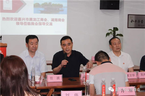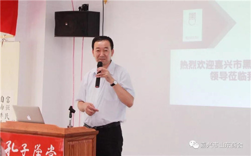 嘉兴山东商会会长张庆允向来访的兄弟商会表示热烈欢迎