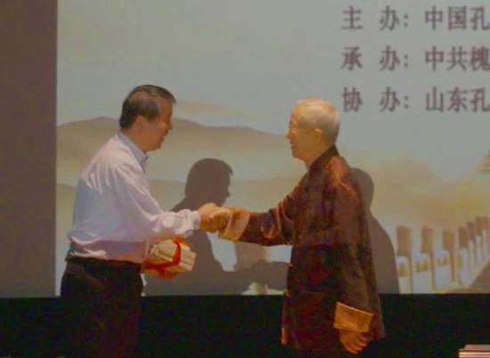 为传播和弘扬传统文化,曾仕强先生将自己多年来录制的讲学视频无偿赠送给孔子学堂,中国孔子基金会副理事长牛廷涛代表孔子学堂接受了这份宝贵的礼物。