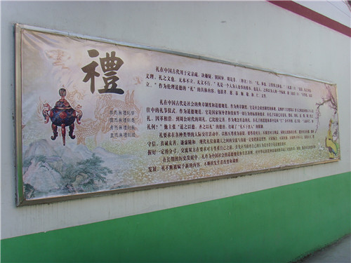 2015年12月,学校被授予全国177号孔子学堂。学校坚持“秉承传统、开拓创新”的办学理念,进一步规范办学行为,深入挖掘传统文化深厚底蕴,着力抓好传统文化的营造、开发,提升品牌,努力打造具有儒家传统文化特色的现代学校。回顾走过的路,现总结如下:
