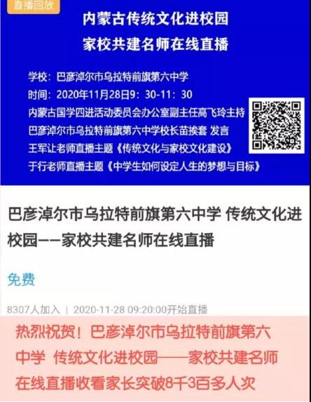 巴彦淖尔市乌拉特前旗第六中学于11月28日开展了家校共建名师在线直播活动。