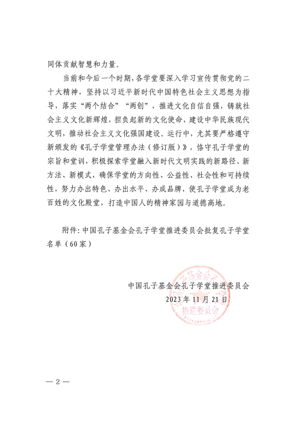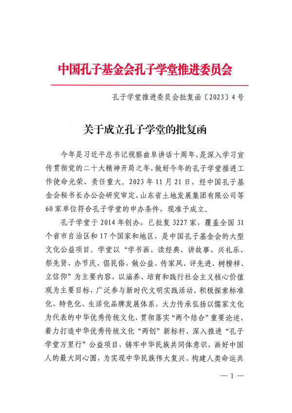孔子学堂推进委员会批复函【2023】第4号