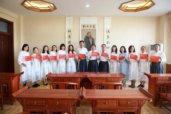 2019年5月17日,学校“孔子学堂”揭牌仪式上,旅游管理学院教师诵读《华夏之声》,旅游管理学院学生诵读《少年中国说》;