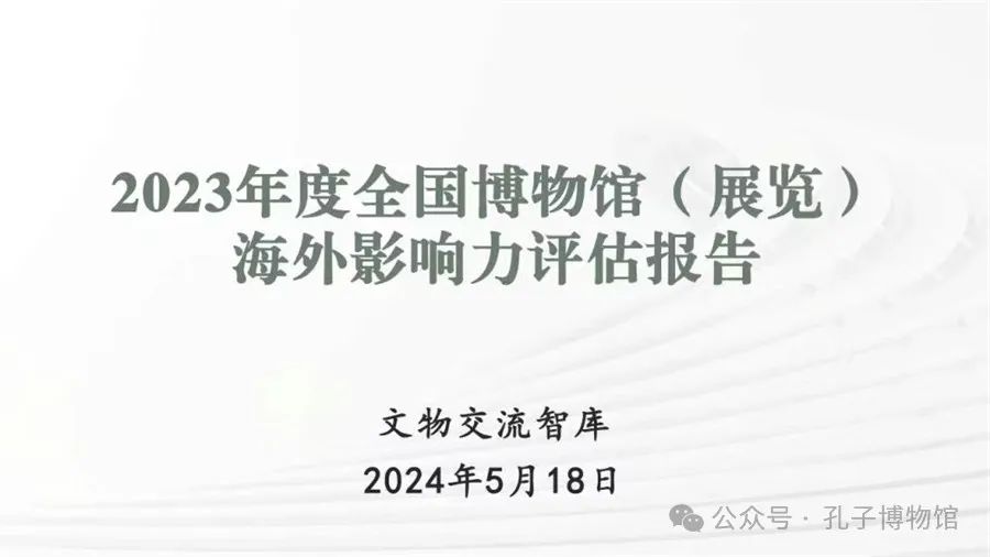 2019年以来,中国文物交流中心联合文物交流智库、瞭望东方周刊、中科智库研究院等文博智库类研究机构,连续4年推出《全国博物馆(展览)海外影响力评估报告》,科学、系统、规范的全国博物馆(展览)海外影响力评价体系已趋成熟。2024年作为报告发布的第五个年头,于“国际博物馆日”首次举办线下发布仪式,孔子博物馆作为“2023年度全国博物馆(展览)海外影响力精品案例二十强”获奖单位,受邀参加盛会,并作精品案例交流分享。